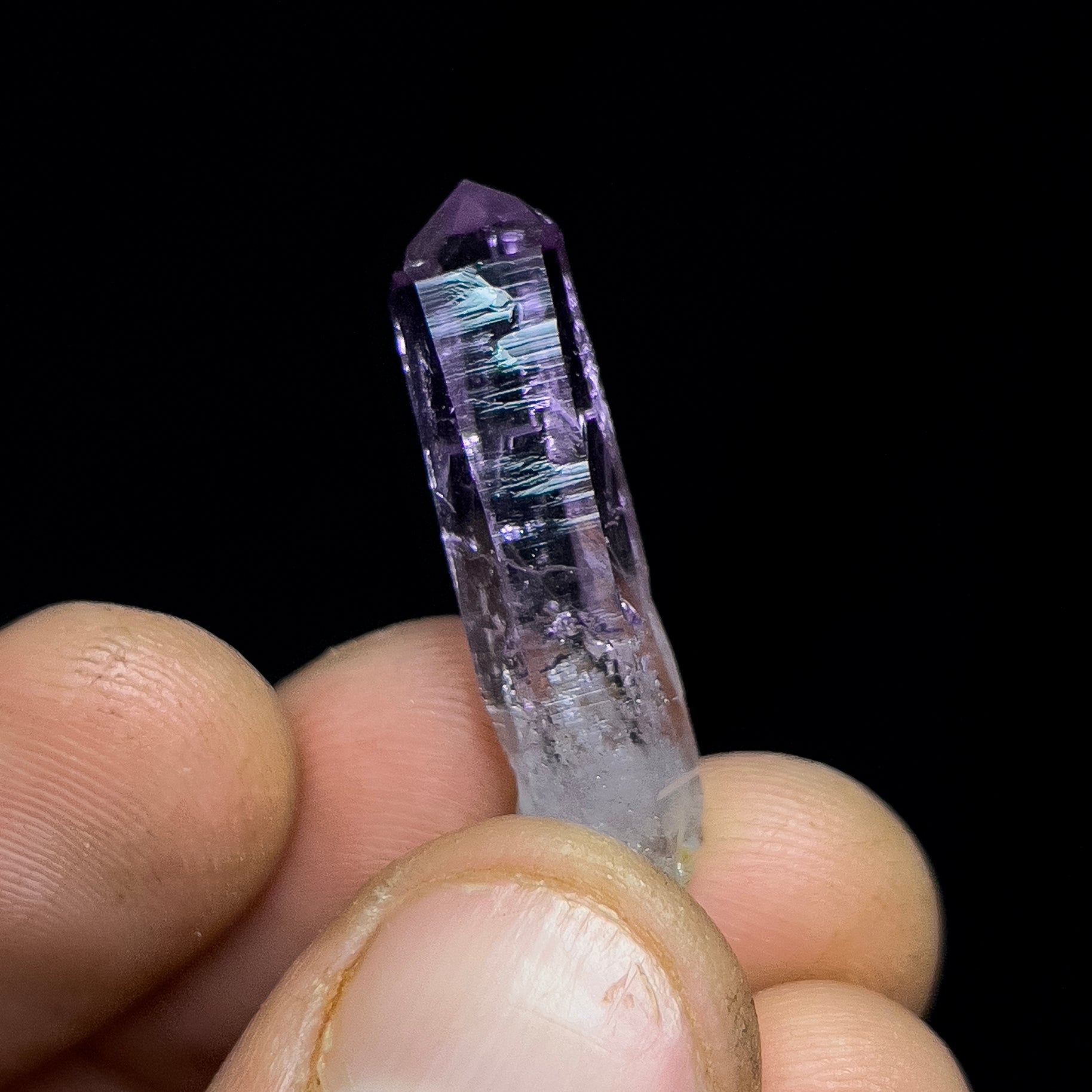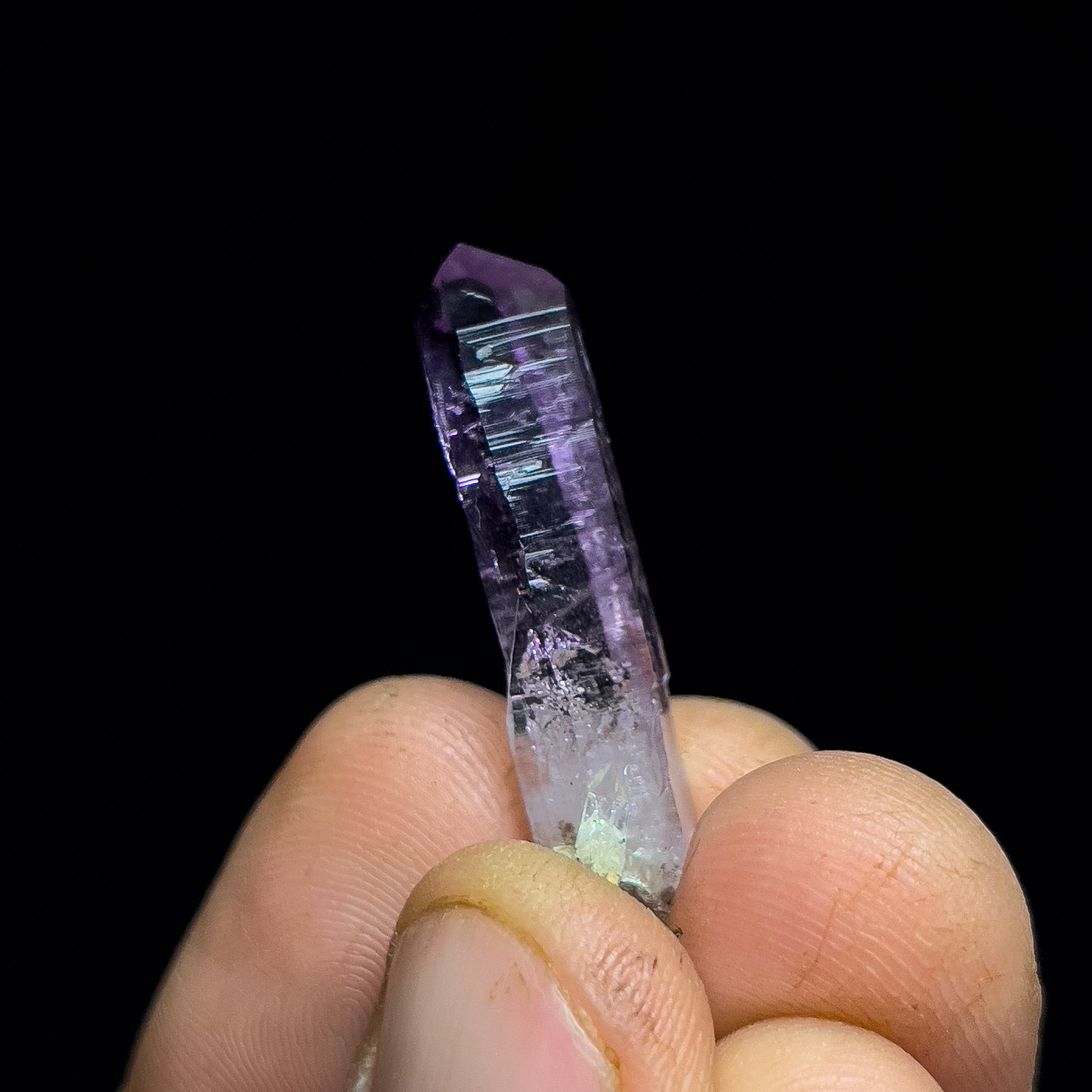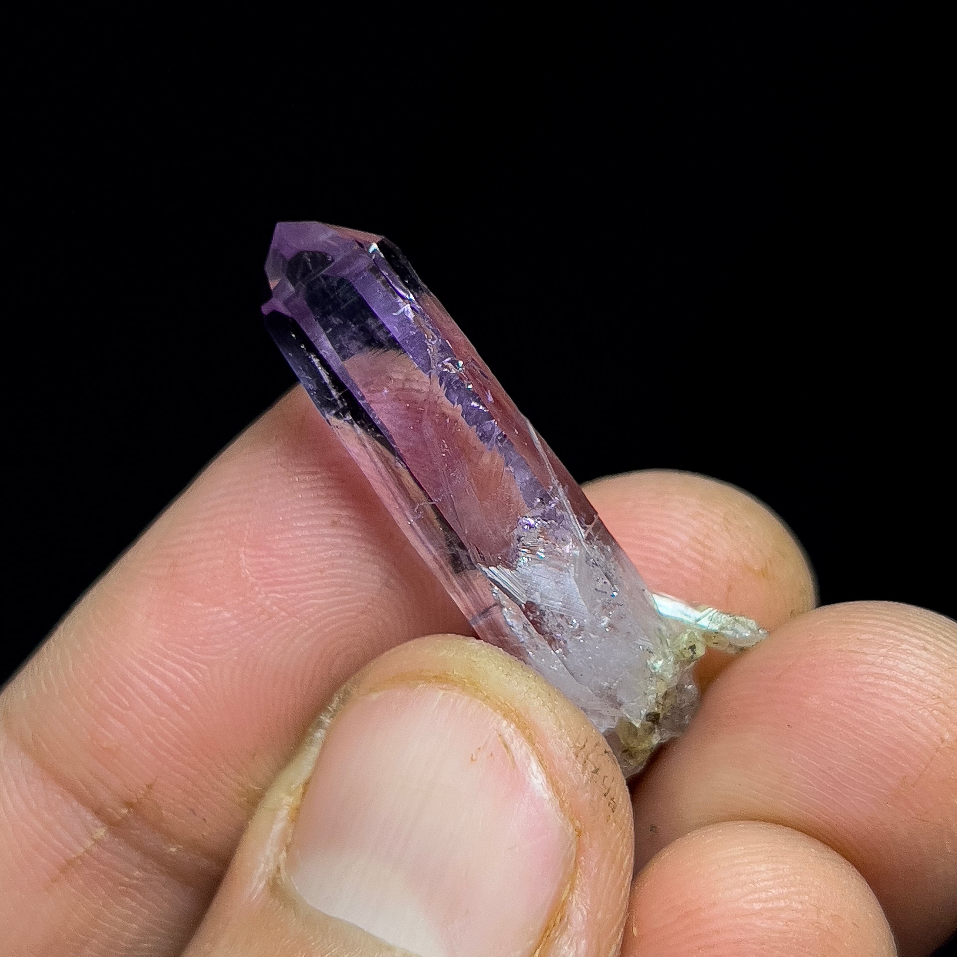 A beautiful amethyst crystal from the Purple Ninja Pocket, Piedra Parada, Tatatila Municipality, Veracruz, Mexico. This fine single crystal has exceptional clarity and luster and exhibits a stunning deep purple hue. It also shows very interesting growth lines and striations on the prism faces, and has phantoms.. It is in pristine condition with no damage to report.