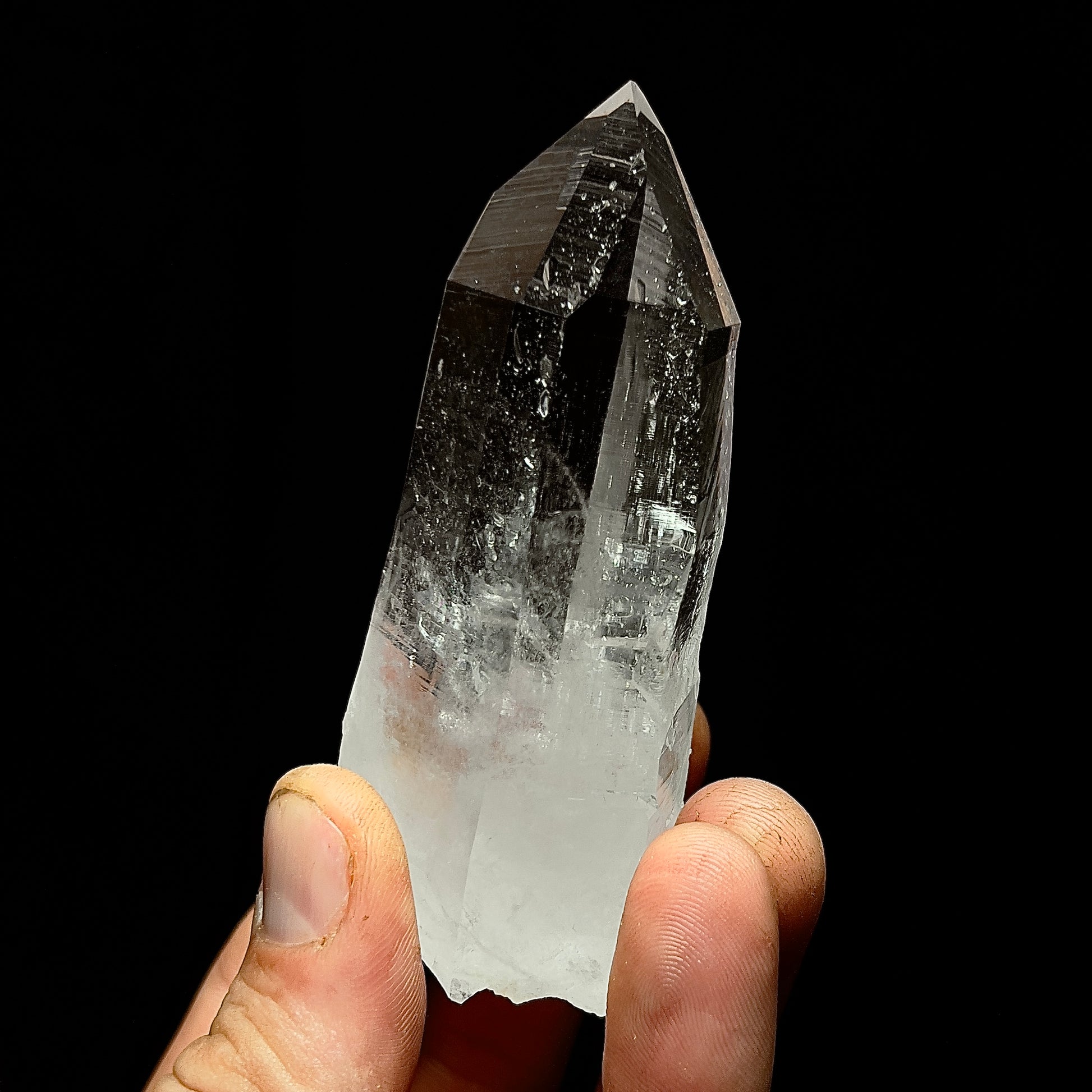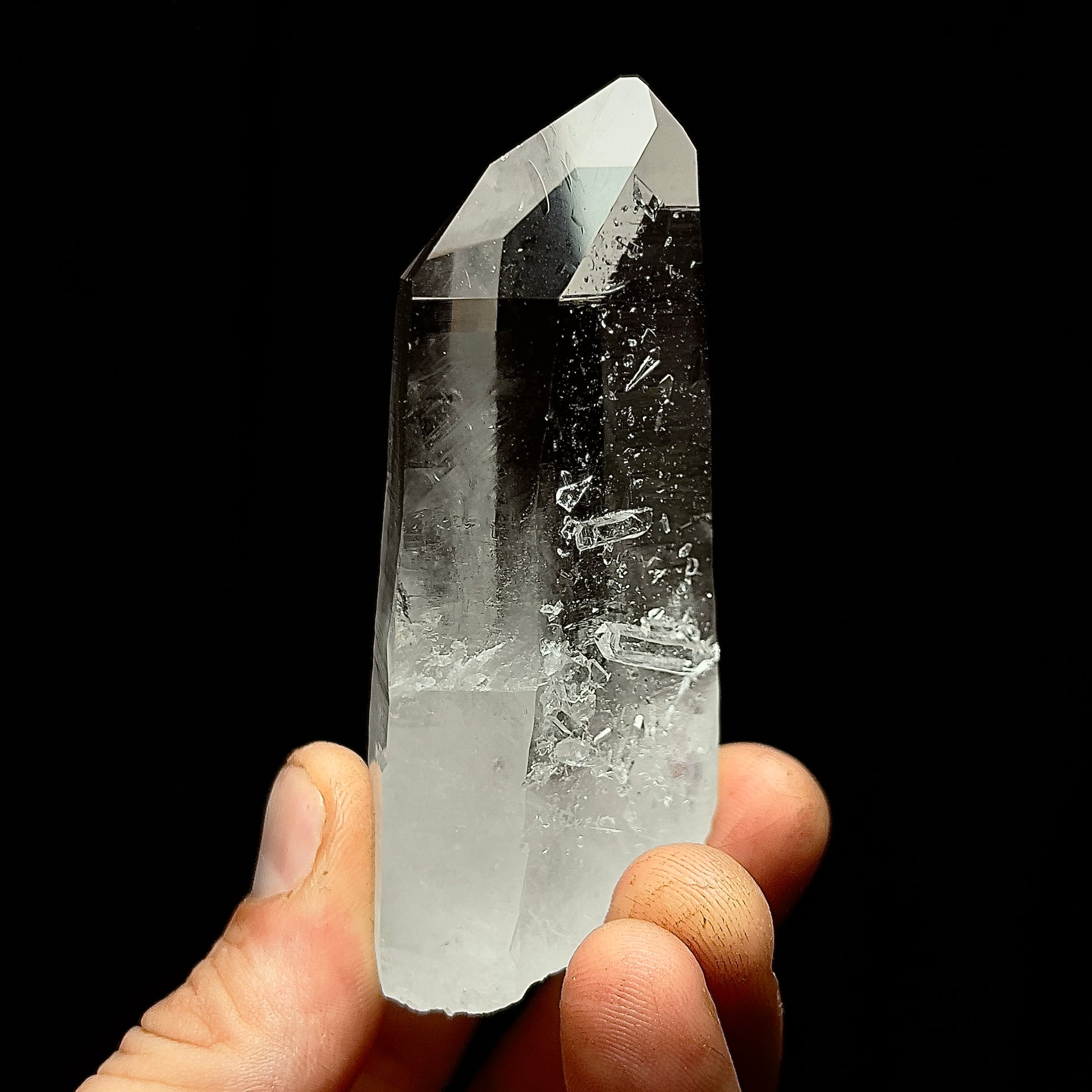 A very fine gem quality quartz crystal from I Me Mine, near Jessieville, Arkansas. This crystal is incredibly clear with mirror luster. Many small crystals formed on the back face, and they are visible when looking through the large crystal. There is no significant damage to report. Custom mounting is available at checkout.