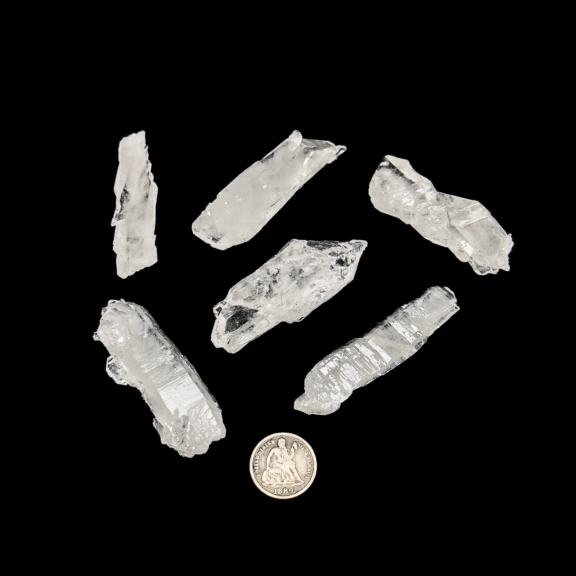 A parcel of six quartz crystals from I Me Mine, near Jessieville, Arkansas. This group consists of 6 elongated crystal shards. All are recrystallized all the way around. Each crystal is unique.
