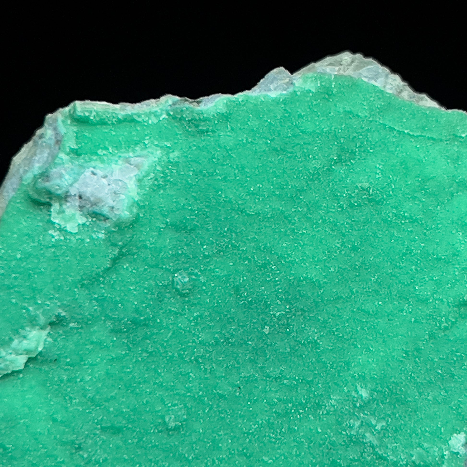 A gorgeous variscite from Dug Hill, near Avant, in Garland Co., Arkansas. This specimen features a piece of host rock with a thin coverage of beautiful green variscite crystals. The crystals are minute, nearly microscopic, but they are crystallized. Crystallized variscite is quite uncommon, with most localities only producing cabochon grade material. The piece is in good condition with no significant damage to report. Custom mounting is available at checkout.